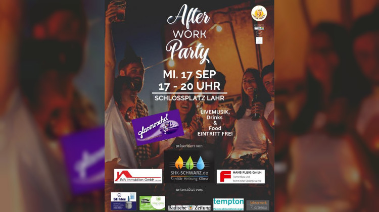 Am Mittwoch, 17. September, lädt die Lahrer Werbegemeinschaft zur After Work Party auf den Schlossplatz ein. Von 17 bis 20 Uhr erwartet dich ein entspanntes Feierabendprogramm mitten in der Stadt.